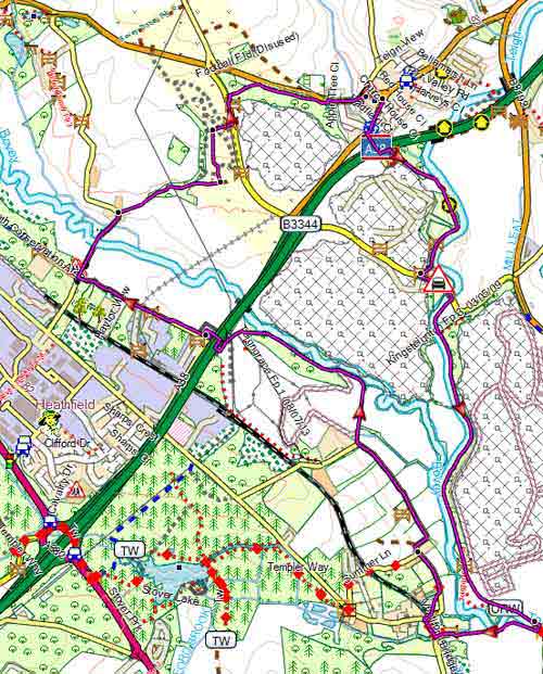 The opening in July 2015 of the new bridge across the A38 has made this new easy walk possible. Walk follows part of the river Teign and Bovey returning via Chudleigh Knighton Heath, a site of special scientific interest.Download GPX route for GPS See on Google Earth | |||