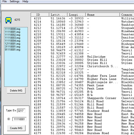 To display NaPTAN data use the following procedure. 1) Register for free with NapTAN: Login here . 2) Once you've got access to their data base select the area you are interested in. 3) Select xml format 4) Once downloaded load into Bus-Stops. 5) Enter an img number (8 digits) 6) Choose a type number for your bus_stop ; the program's default is :0 x 0200 to ensure priority. Remember to check your points style file and use TYPWiz to check if your type is included in your TYP file. image right - :NaPTAN : red buses, OSM:green buses 7) Click 'create img' . 8) Include this img in a gmappsupp.img to uploads to your Garmin Note: Some OSM areas already contain NaPTAN data.